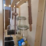 Επίσης, έχει ηλεκτρικό βραστήρα, ψυγείο και εστία μαγειρέματος.
